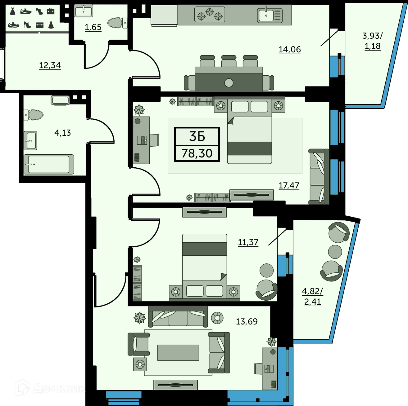 Площади квартир