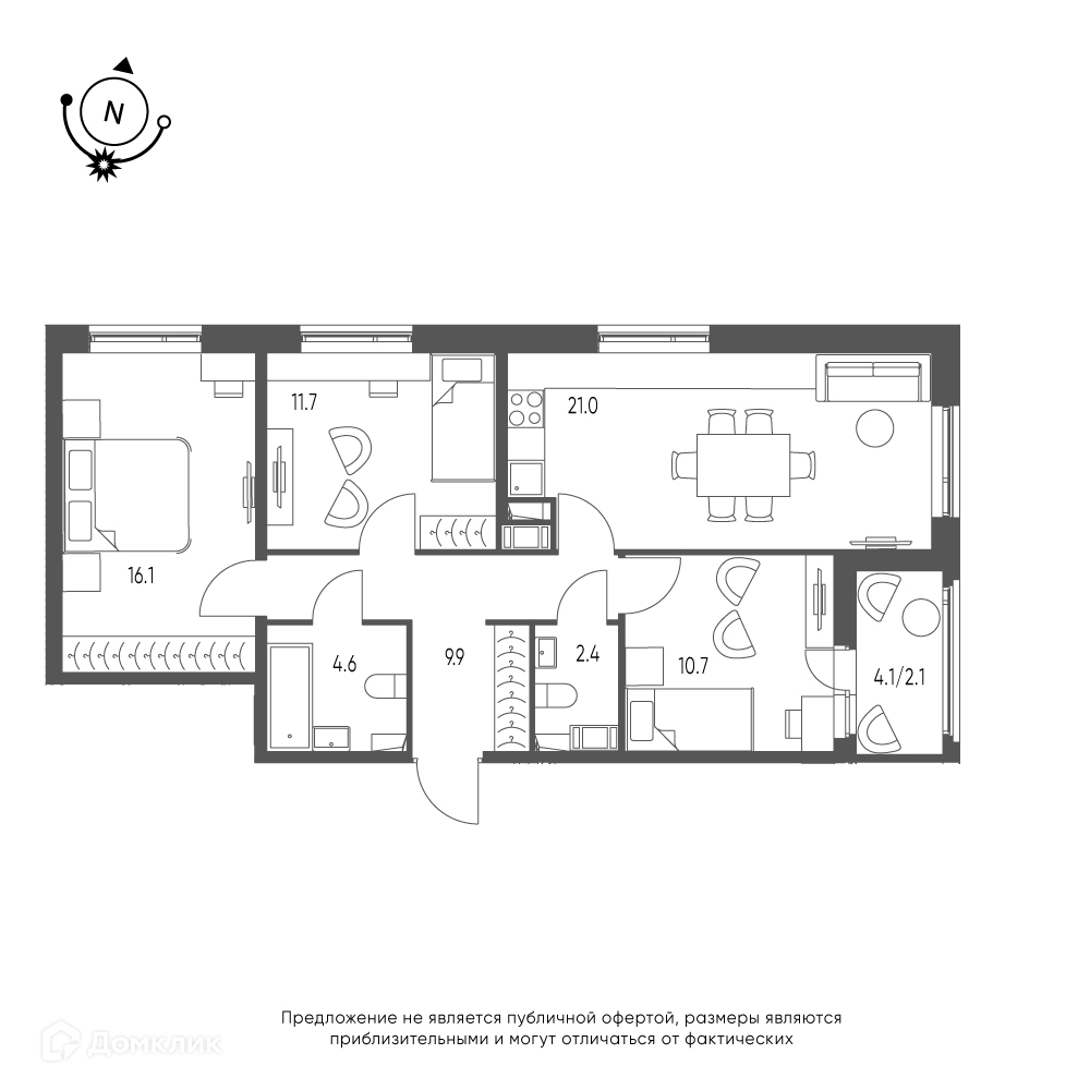 Площади квартир