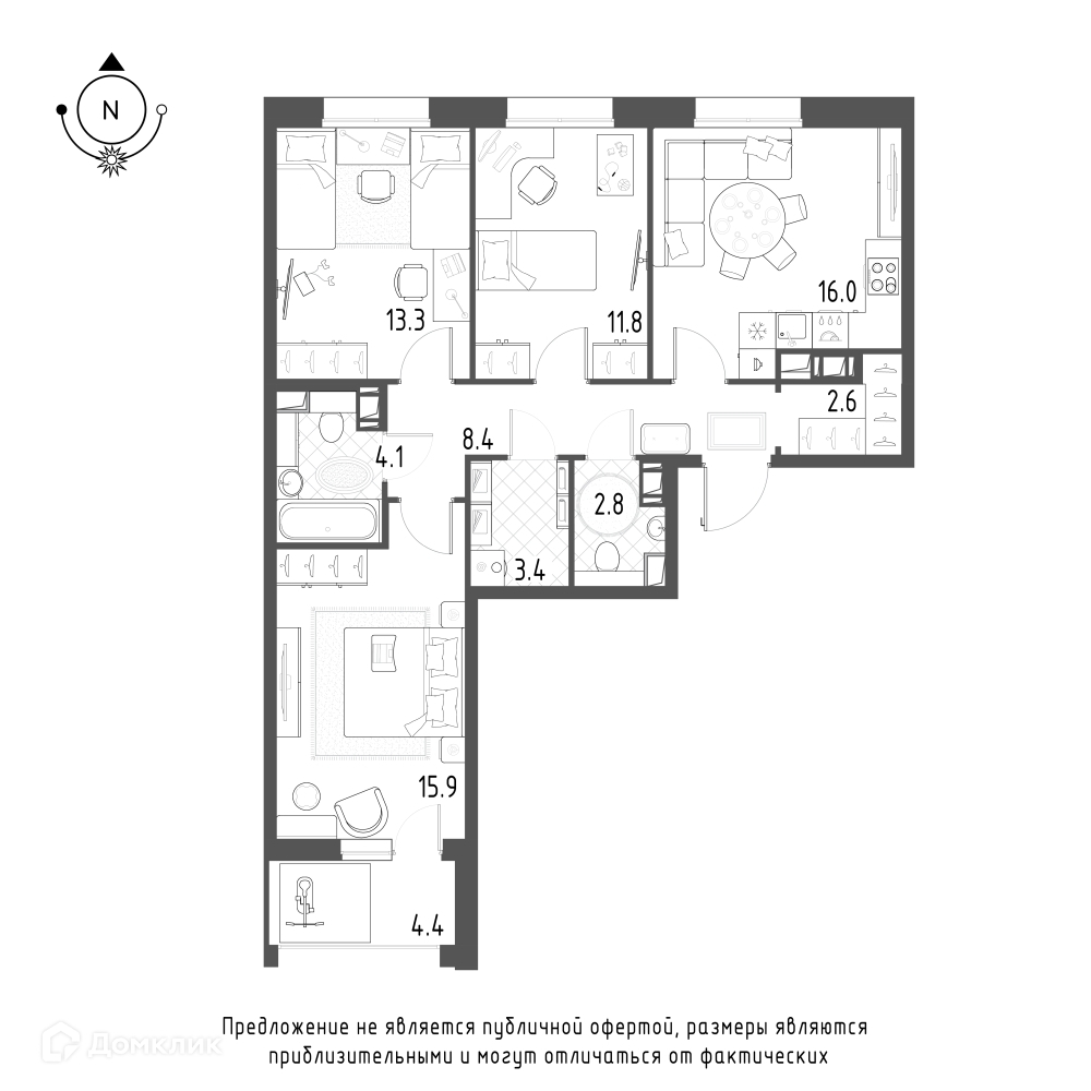 Площади квартир