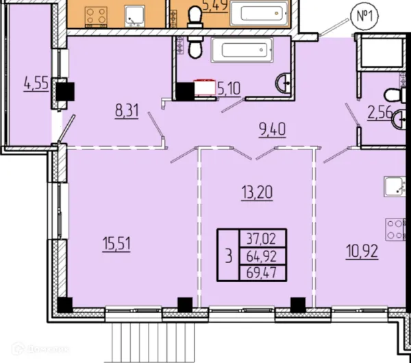 3 комн. квартира в Омске в ипотеку от 56 916 руб/месяц