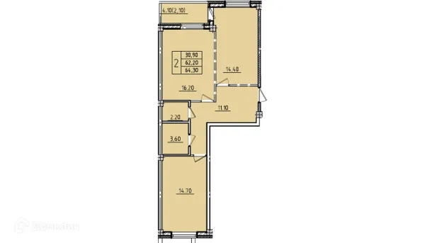 2 комн. квартира в Омске в ипотеку от 59 799 руб/месяц