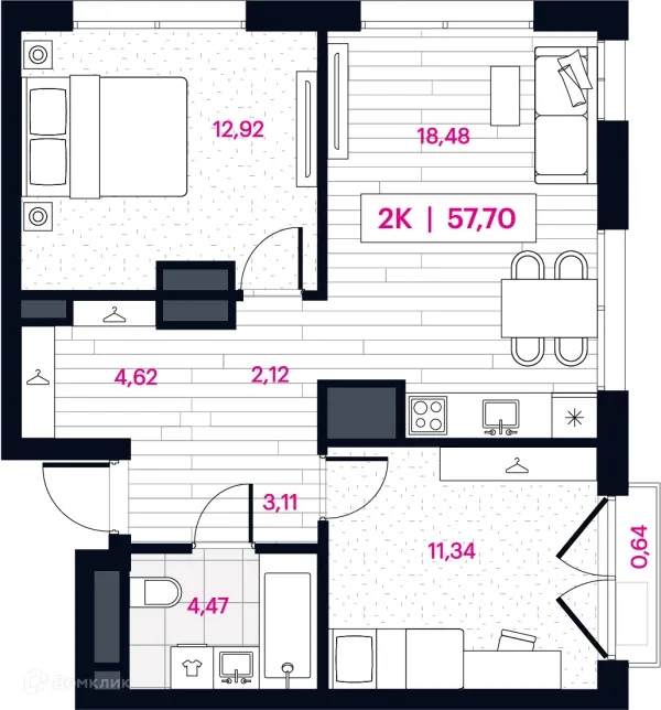 2 комн. квартира в Омске в ипотеку от 56 467 руб/месяц