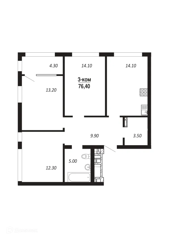 3 комн. квартира в Омске в ипотеку от 73 817 руб/месяц