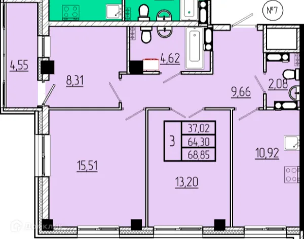 3 комн. квартира в Омске в ипотеку от 102 934 руб/месяц