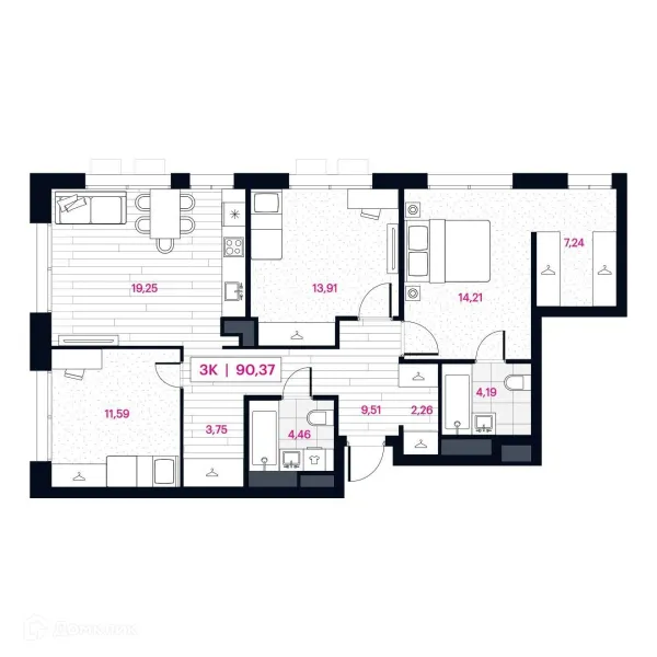 3 комн. квартира в Омске в ипотеку от 75 574 руб/месяц