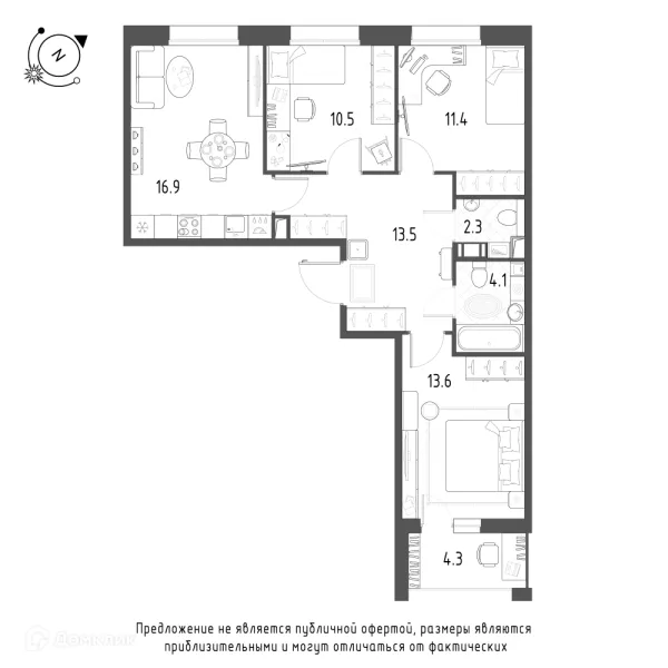 3 комн. квартира в Омске в ипотеку от 73 817 руб/месяц