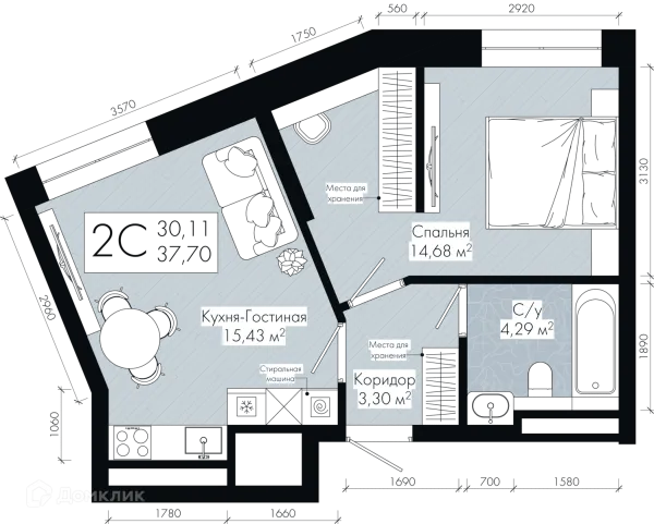 2 комн. квартира в Уфе в ипотеку от 65 703 руб/месяц