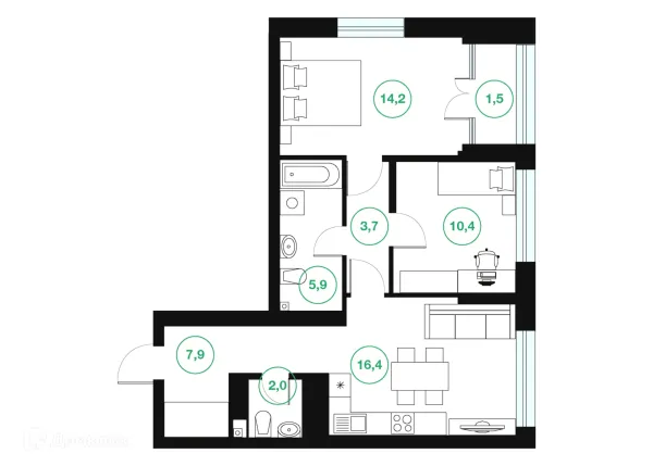 2 комн. квартира в Уфе в ипотеку от 48 664 руб/месяц