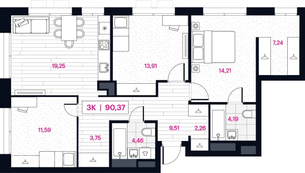 3 комн. квартира в Омске в ипотеку от 77 892 руб/месяц