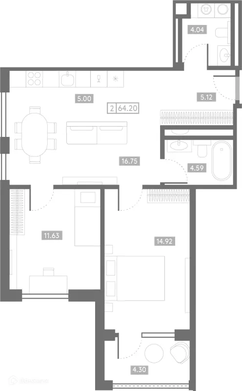 2 комн. квартира в Ростове-на-Дону в ипотеку от 74 890 руб/месяц