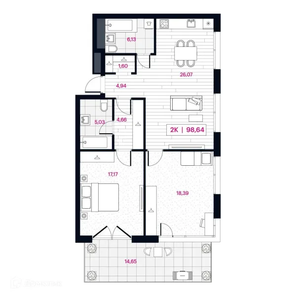 2 комн. квартира в Омске в ипотеку от 100 958 руб/месяц